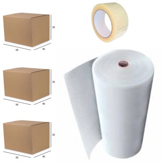 Monte o seu Kit Mudança ideal! Solução completa com caixas de papelão (grande, pequeno e médio), fita adesiva e plástico bolha (grande, pequeno e cortado). Tudo o que você precisa para embalar com segurança.